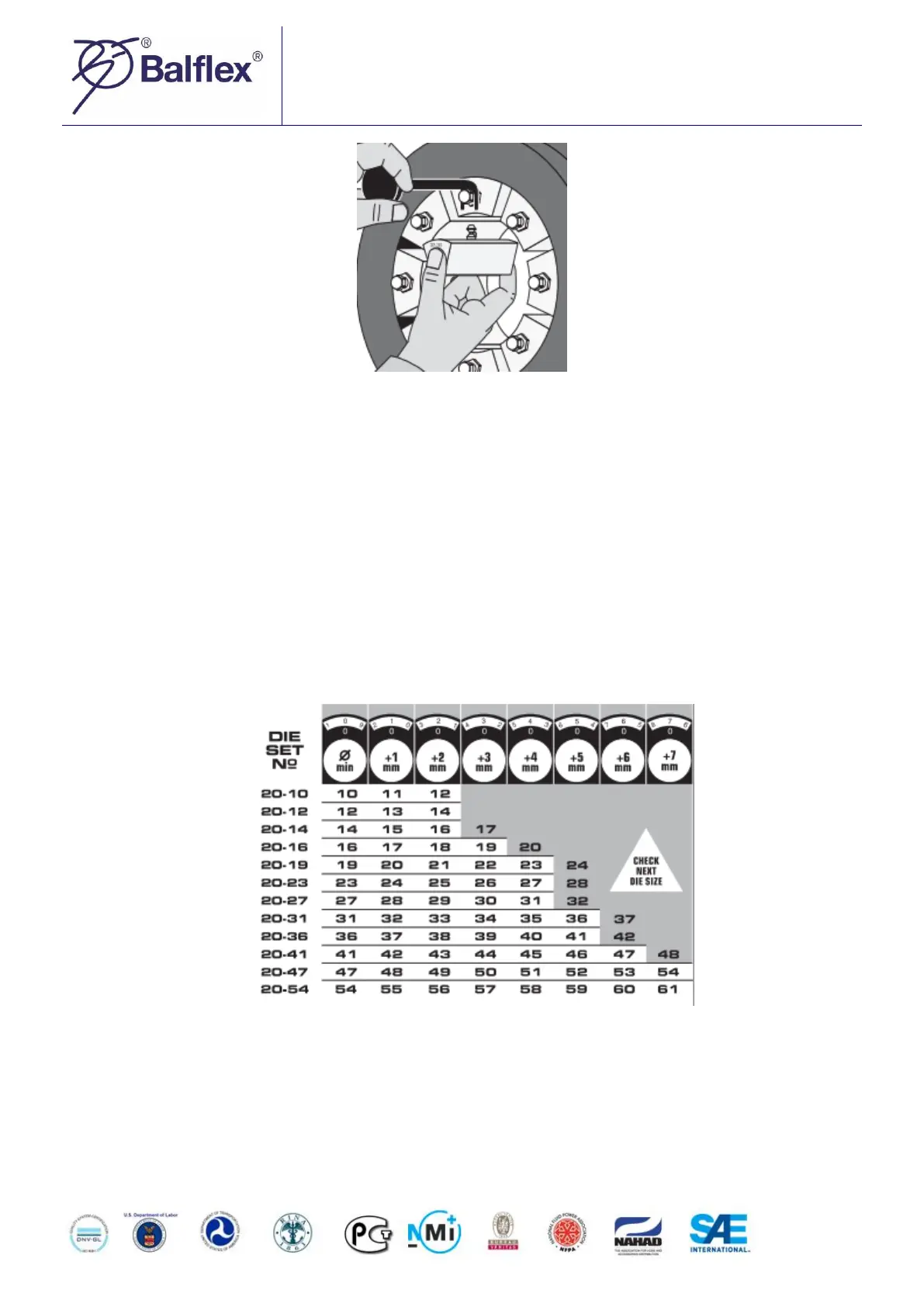 of the die set installed, i.e. with die set Nº P20/16 the crimping diameter will be 16 mm, Nº P20/19 gives a diameter