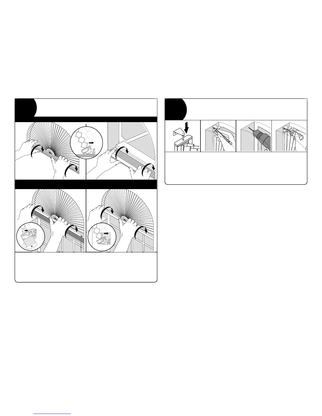 Enclencher le store sur les supports de montage. Glisser la tête de l’agrafe en éventail centrale,