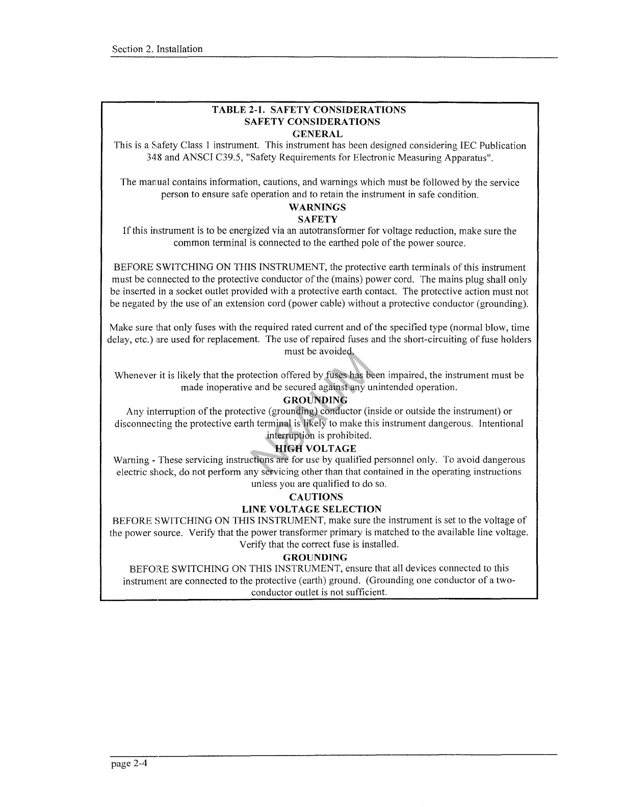 TABLE 2-1. SAFETY CONSIDERATIONS