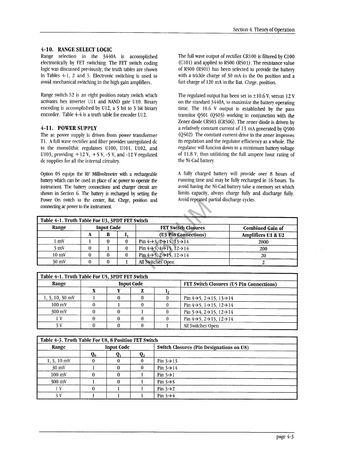 Ballantine 3440A - 4-10. Range Select Logic; 4-11. Power Supply