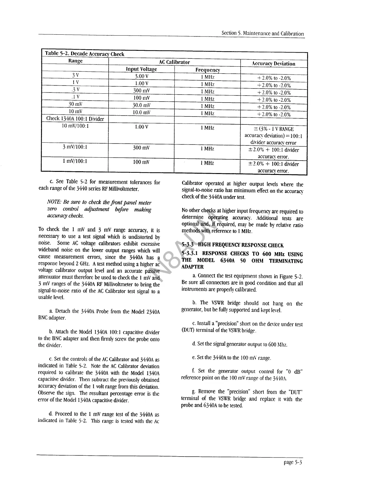 Ballantine 3440A - 5-3.3 High Frequency Response Check; 5-3.3.1 Response Checks to 600 MHz Using the Model 6340 A 50 Ohm Terminating Adapter