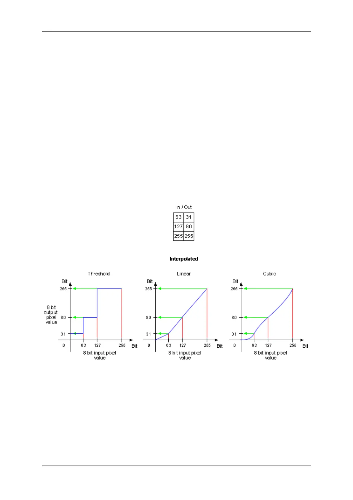 points. The following figure shows the behavior of all 3 LUTInterpolationModes with 3 key points: