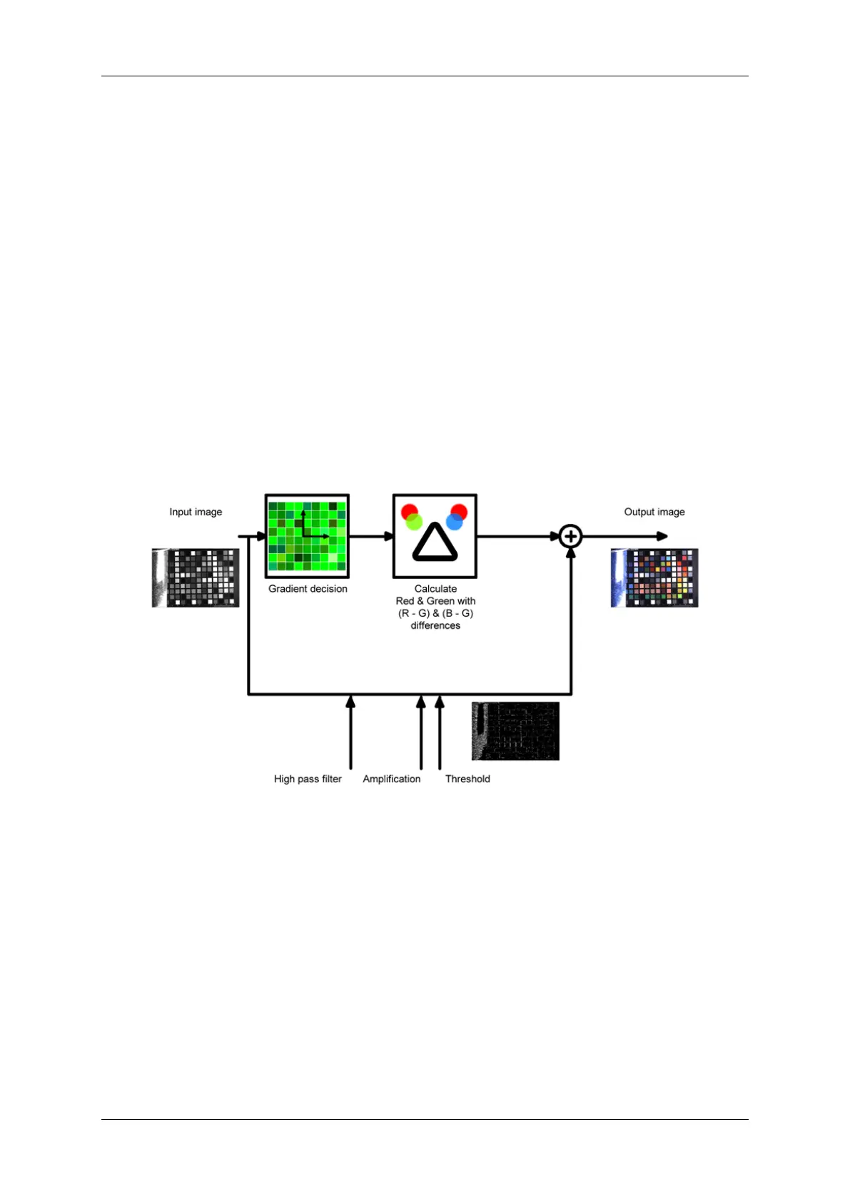 interpolates the values and adds the green values again. The second path below adds a high path filter, an amplifier,