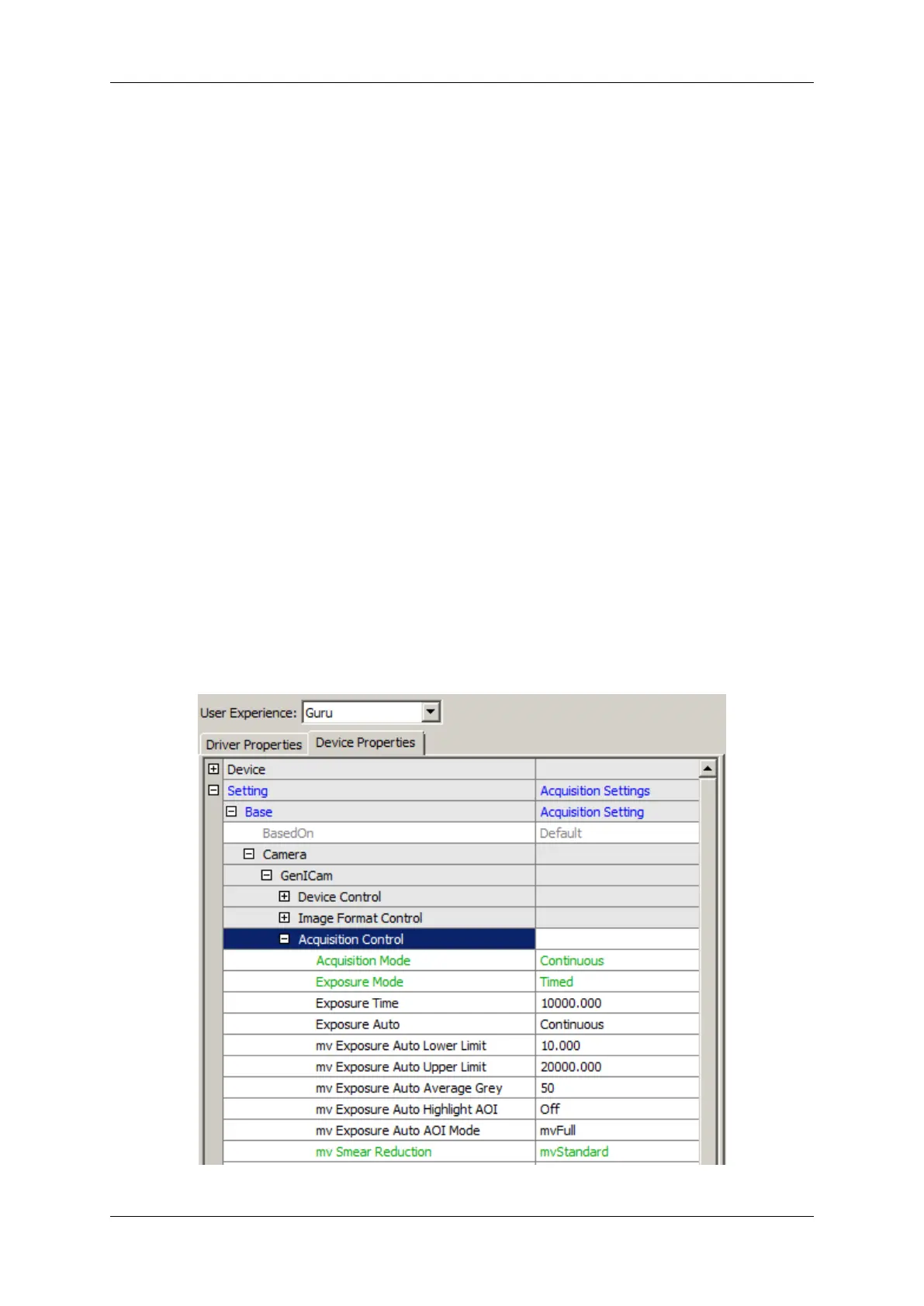 Common properties for AutoExposureControl, AutoGainControl , and AutoWhiteBalance are available via mv Auto
