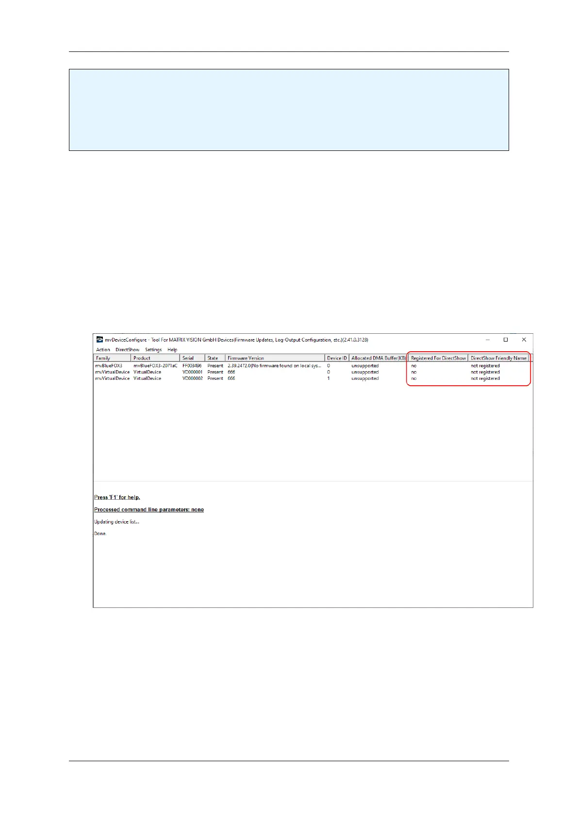 To register all devices currently recognized by the mvIMPACT Acquire driver stack for access with DirectShow the