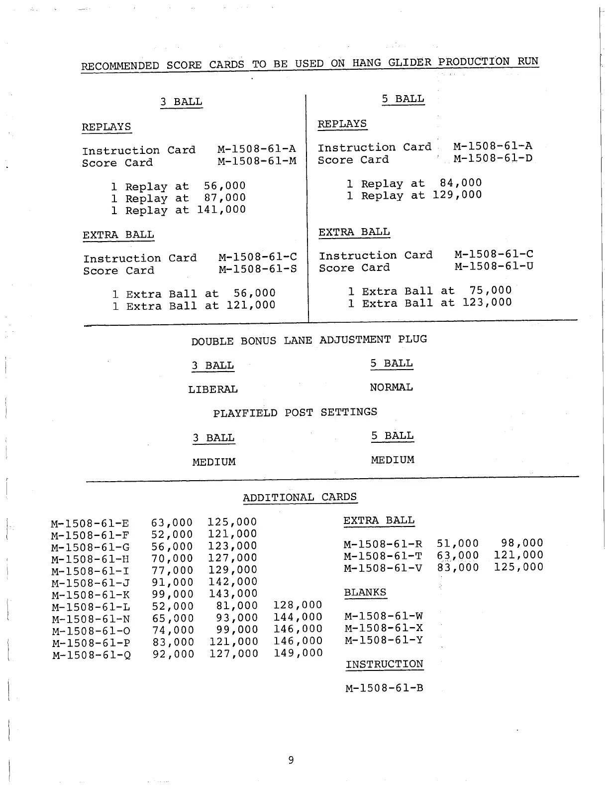 RECOMMNDED SCORE CARDS TO BE USED ON HANG GLIDER PRODUCTION RUN