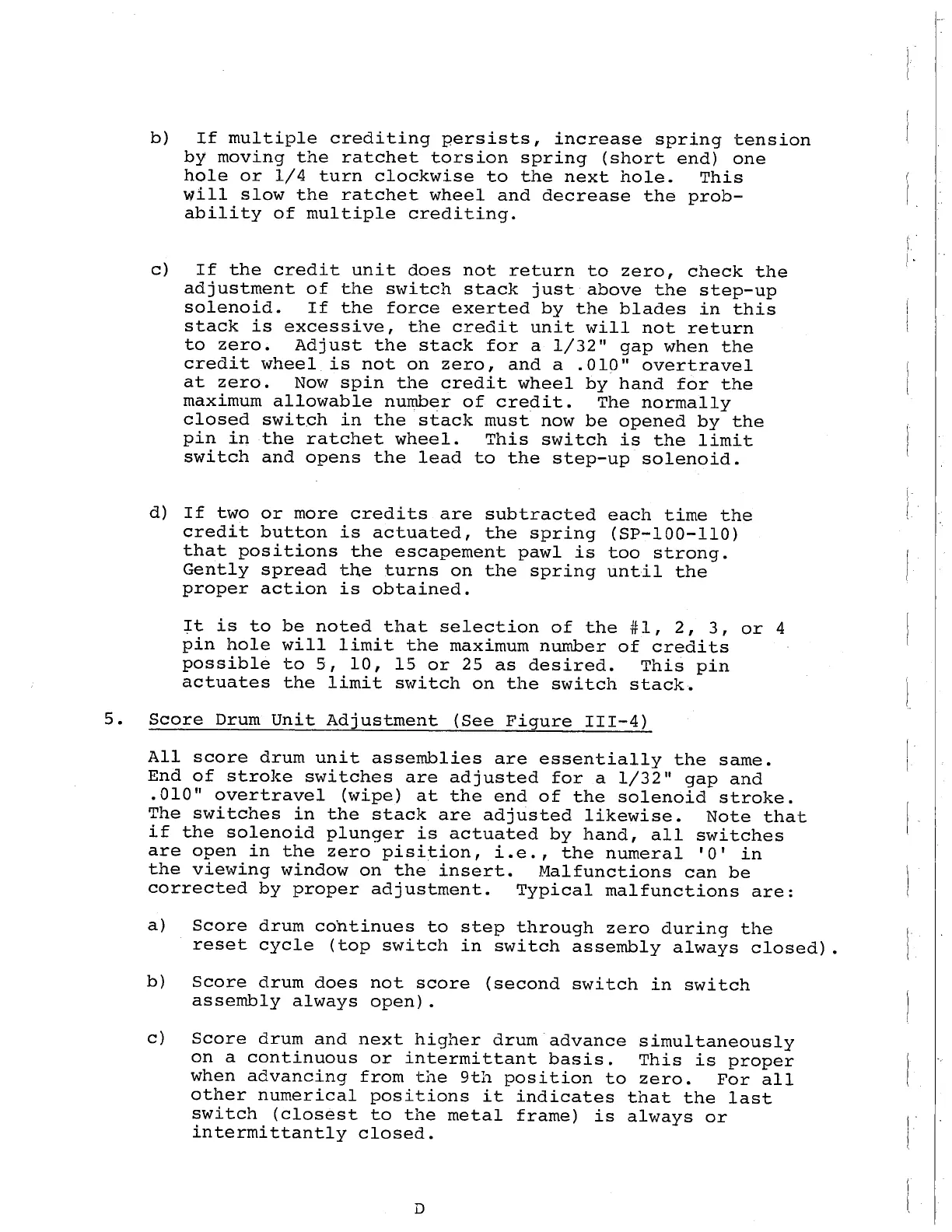 5. Score Drum Unit Adjustment (See Figure III-4)