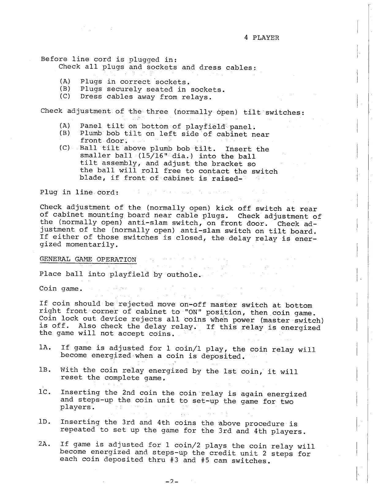 2A. If game is adjusted for 1 coin/2 plays the coin relay will