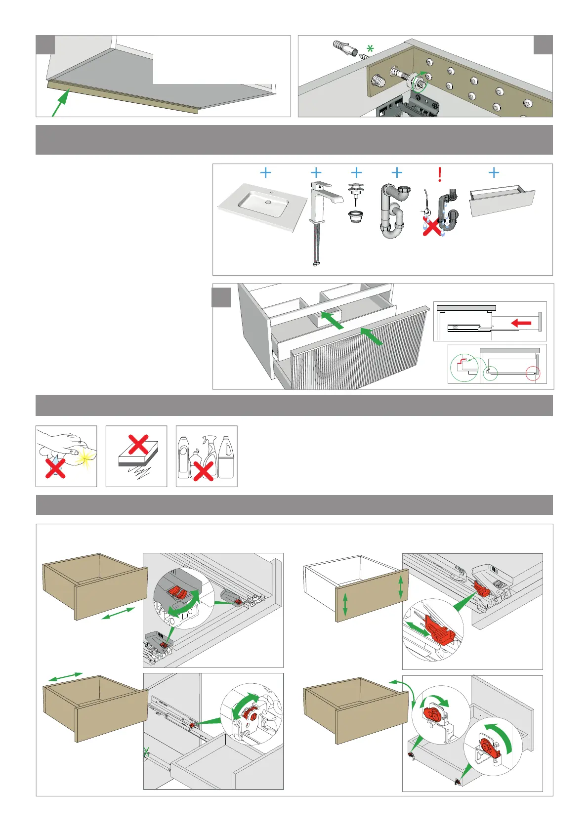 DRAWER ADJUSTMENT - LADE REGELEN - RÉGLAGE DU TIROIR -SCHUBLADENEINSTELLUNG
