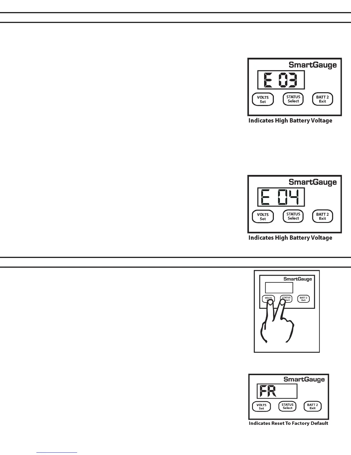 and 34.00 volts in 24 volt mode. If these limits are exceeded SmartGauge™ has no way of measuring the actual