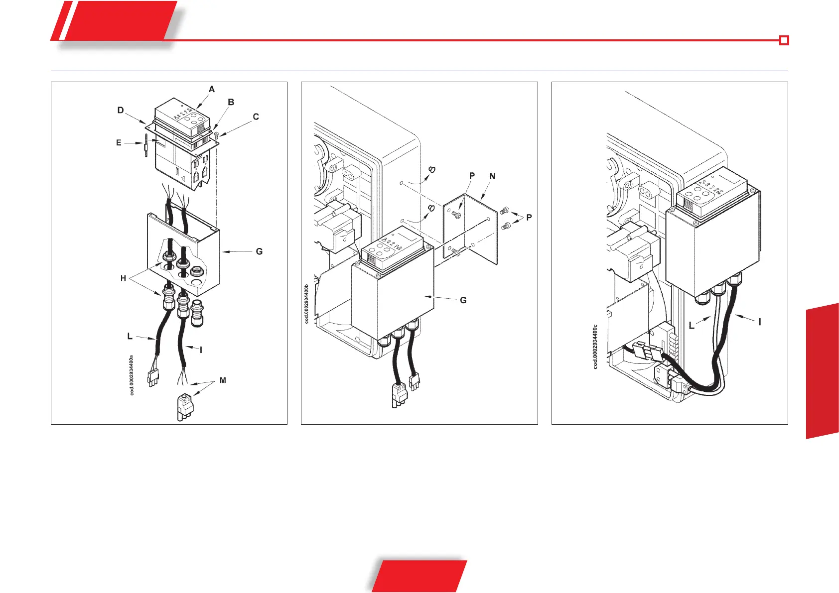 (M) suministrado con el quemador, conecte los cables (I) y (L) al
