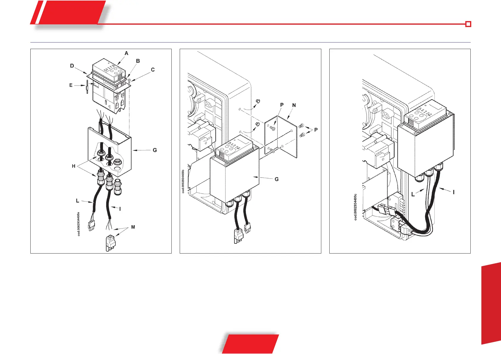 l’aide des vis (C) prévues à cet effet et serrer les presse-étoupes (H).