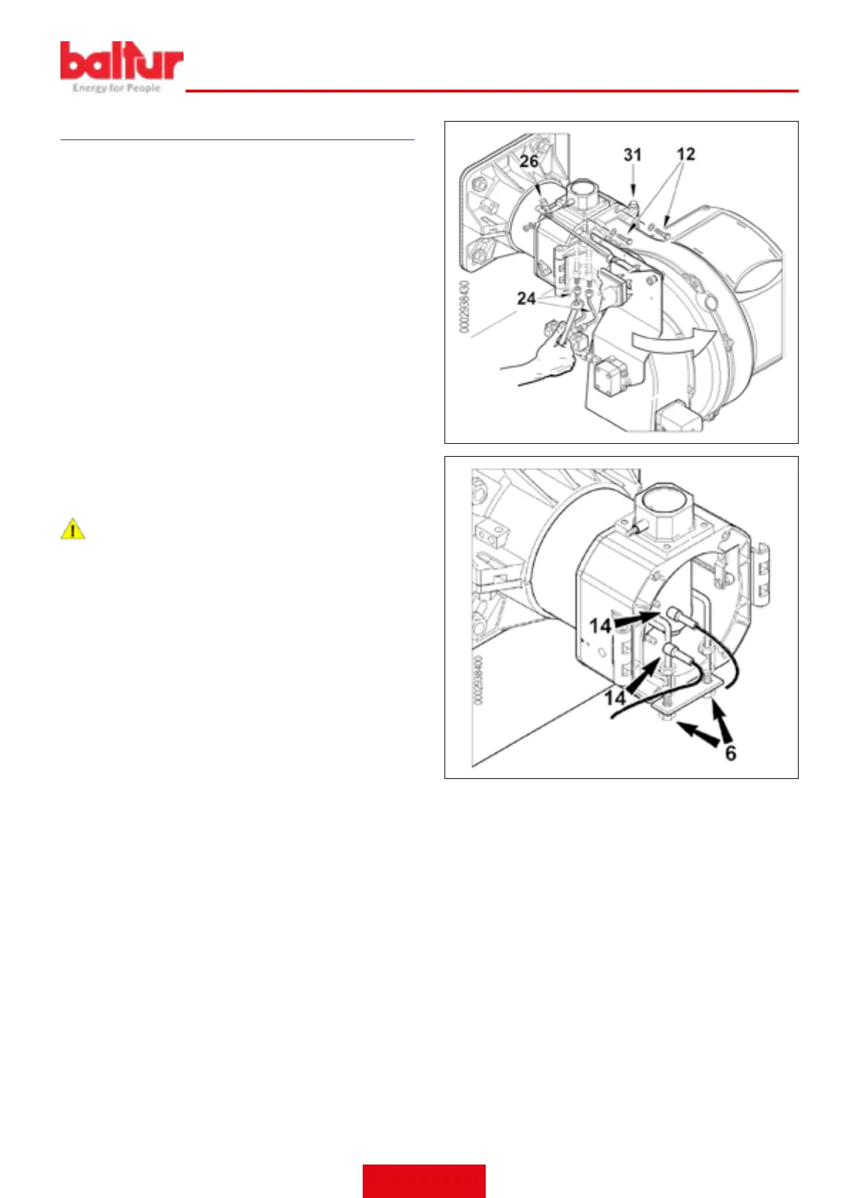 • Svitare le due viti (12) e ruotare il bruciatore attorno al perno (31)