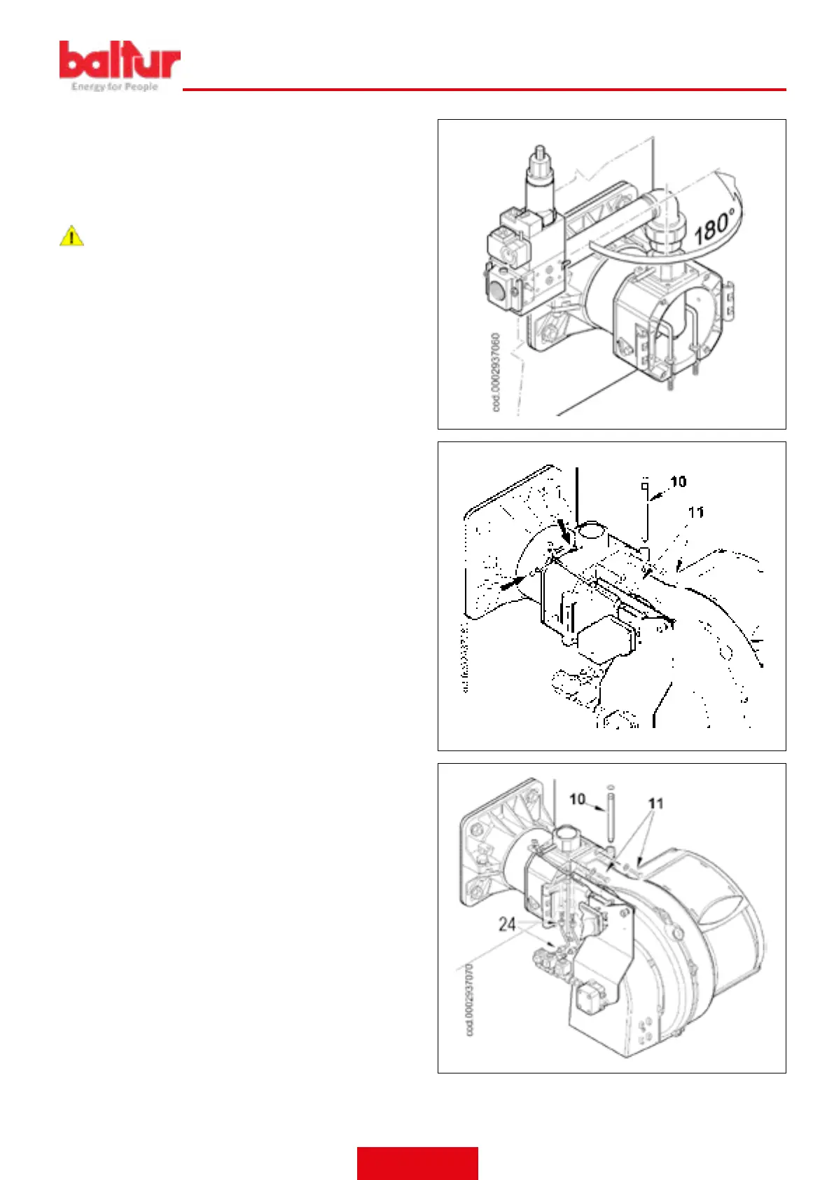 electrodes, close the hinge, locking the burner by means of screws