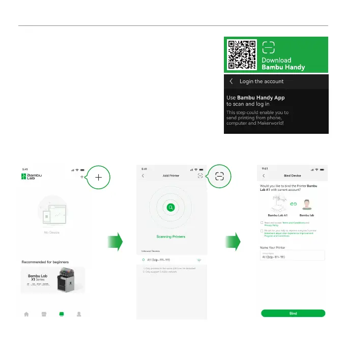 ② Use Bambu Handy to scan the QR code on the screen,