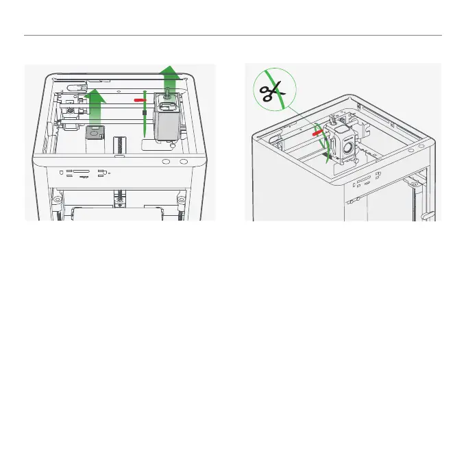 Remove the carboard from the tool head. Cut the zip tie securing the toolhead.