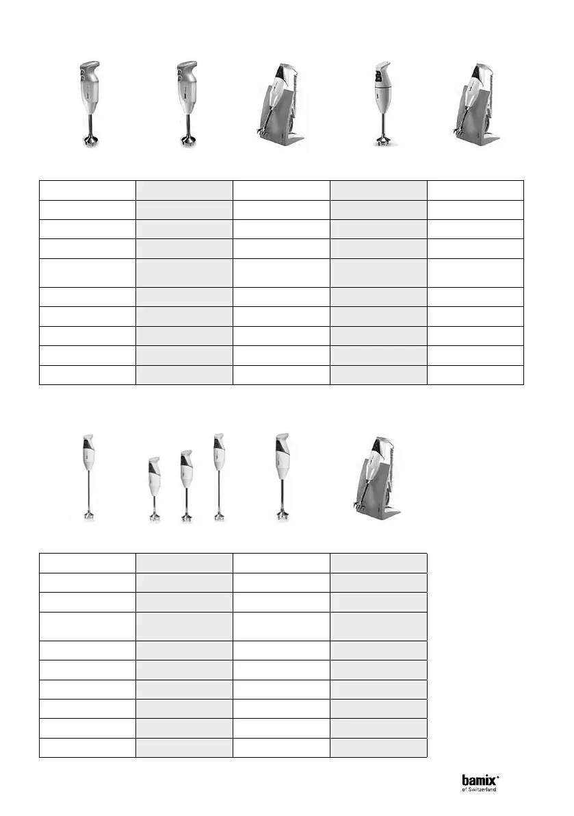 The complete model matrix including accessories can be downloaded from: www.bamix.com
