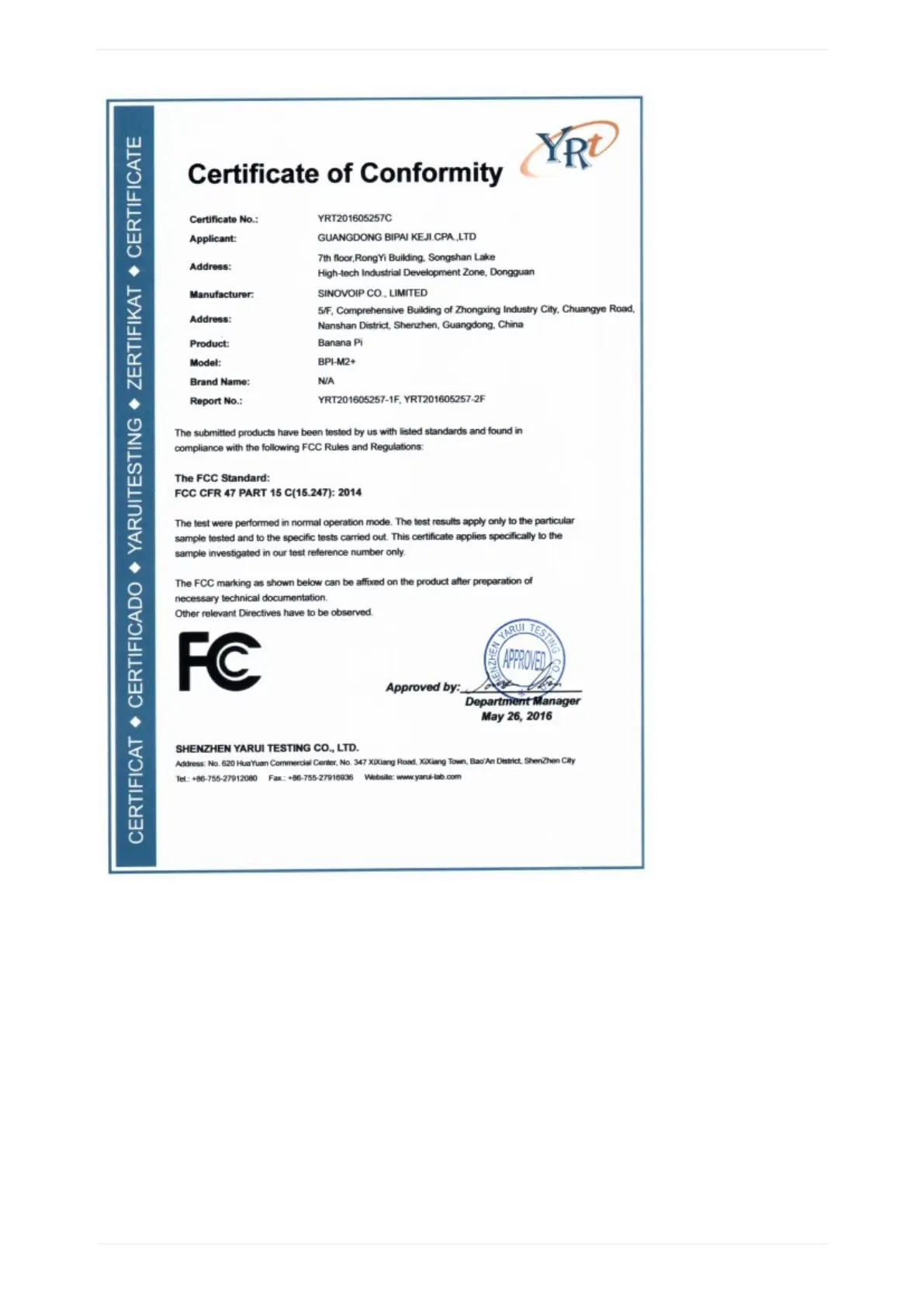 BPI-M2+CE,FCCRoHSCertification