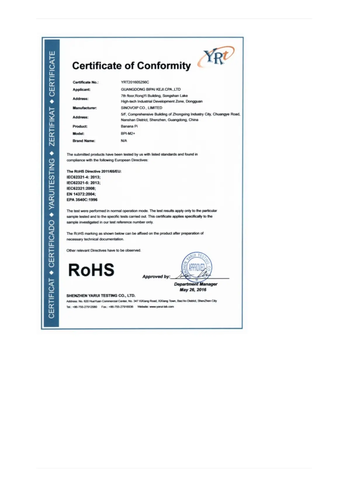 BPI-M2+CE,FCCRoHSCertification