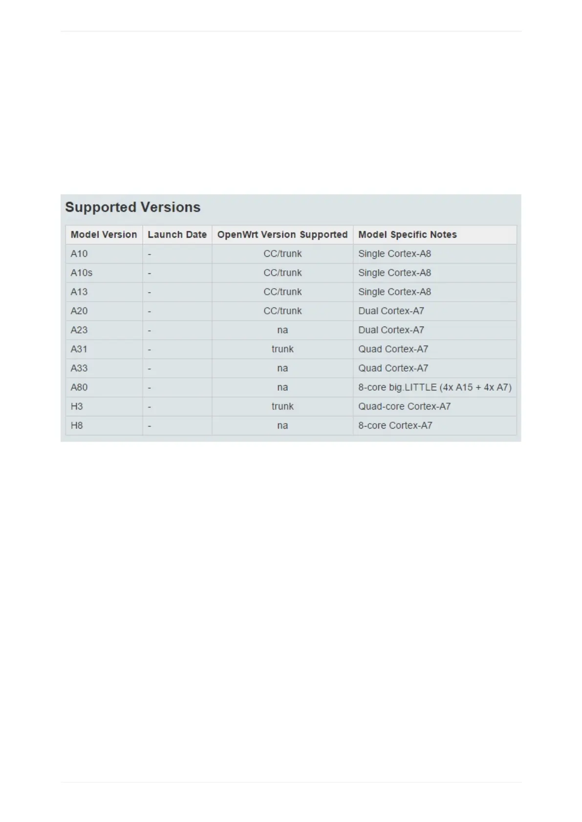 AllwinnerSoCs.ThesearerunningvariousflavorsoftheA1x,A20,A31,andsoonH3SoCs,withdifferentbuildouts.The