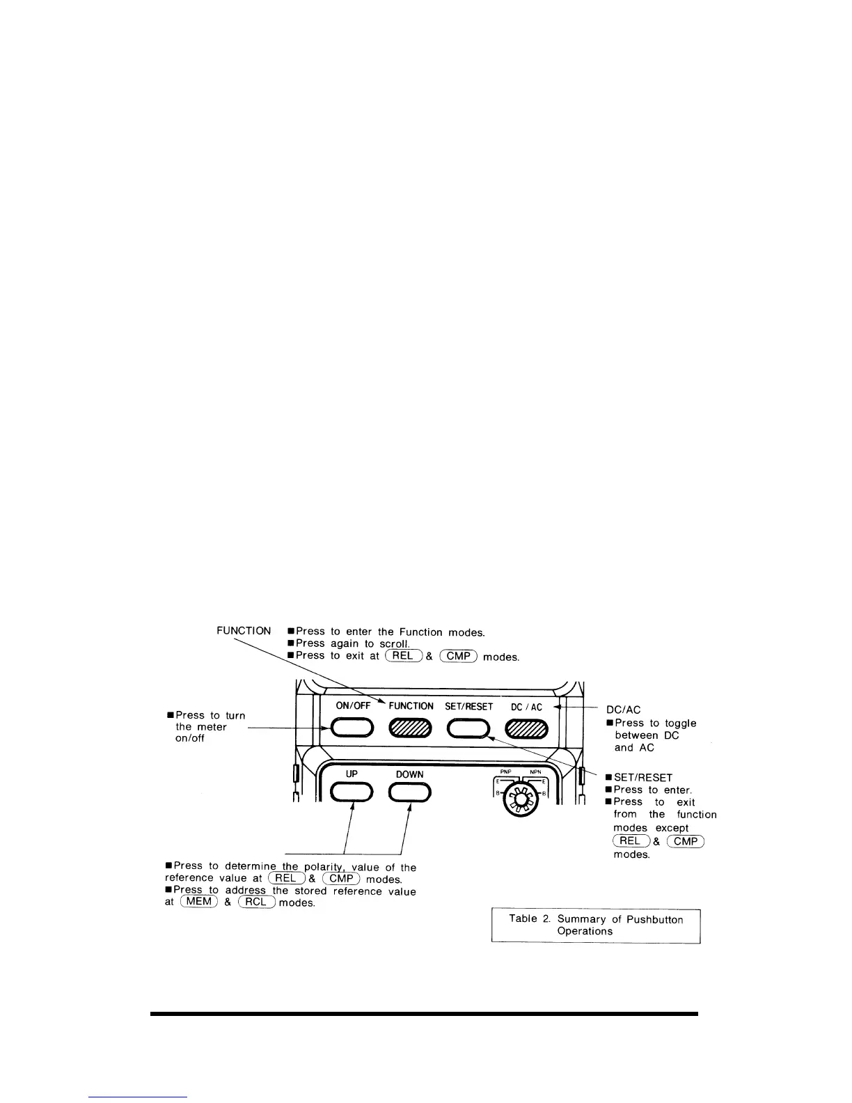 is pushed the beeper sounds. A summary of pushbutton operation is shown