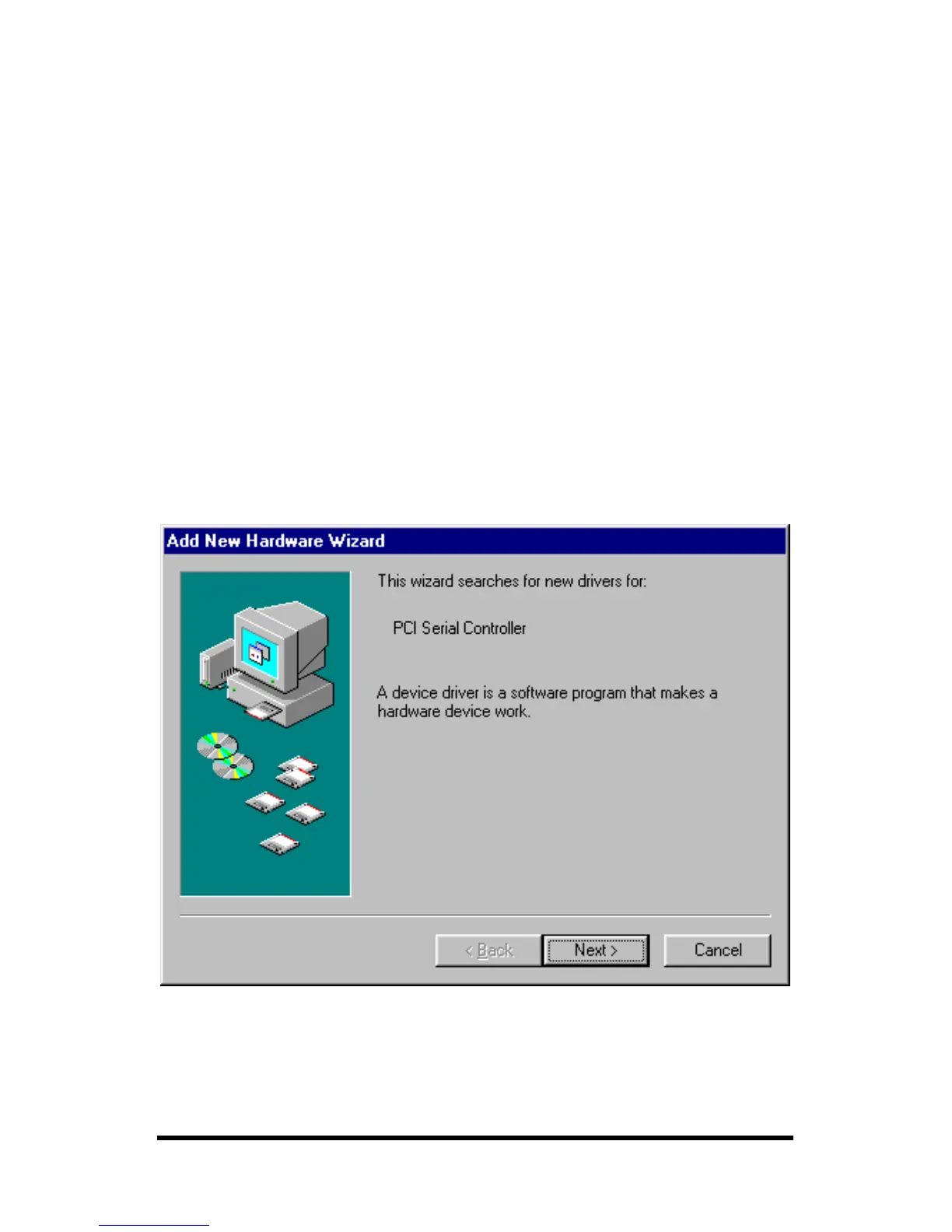 3. Windows will detect the PCI card, start the Add New Hardware