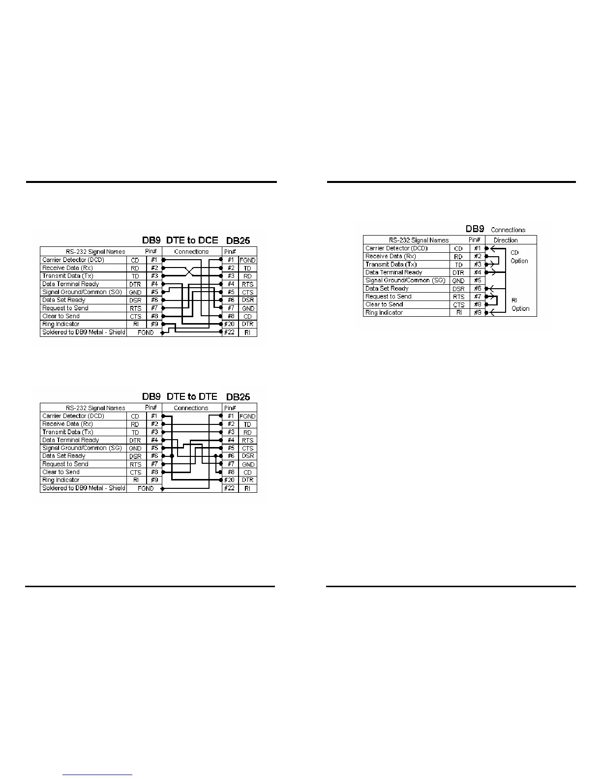 RS-232 Crossover DB-9 to DB-25 Conversion Connections