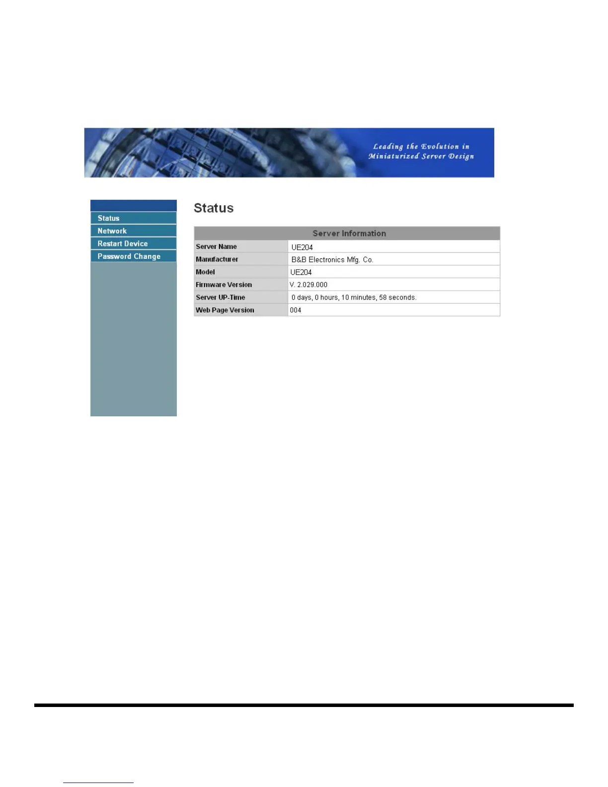 The main page of the configuration UI displays important information. Clicking on “Status”