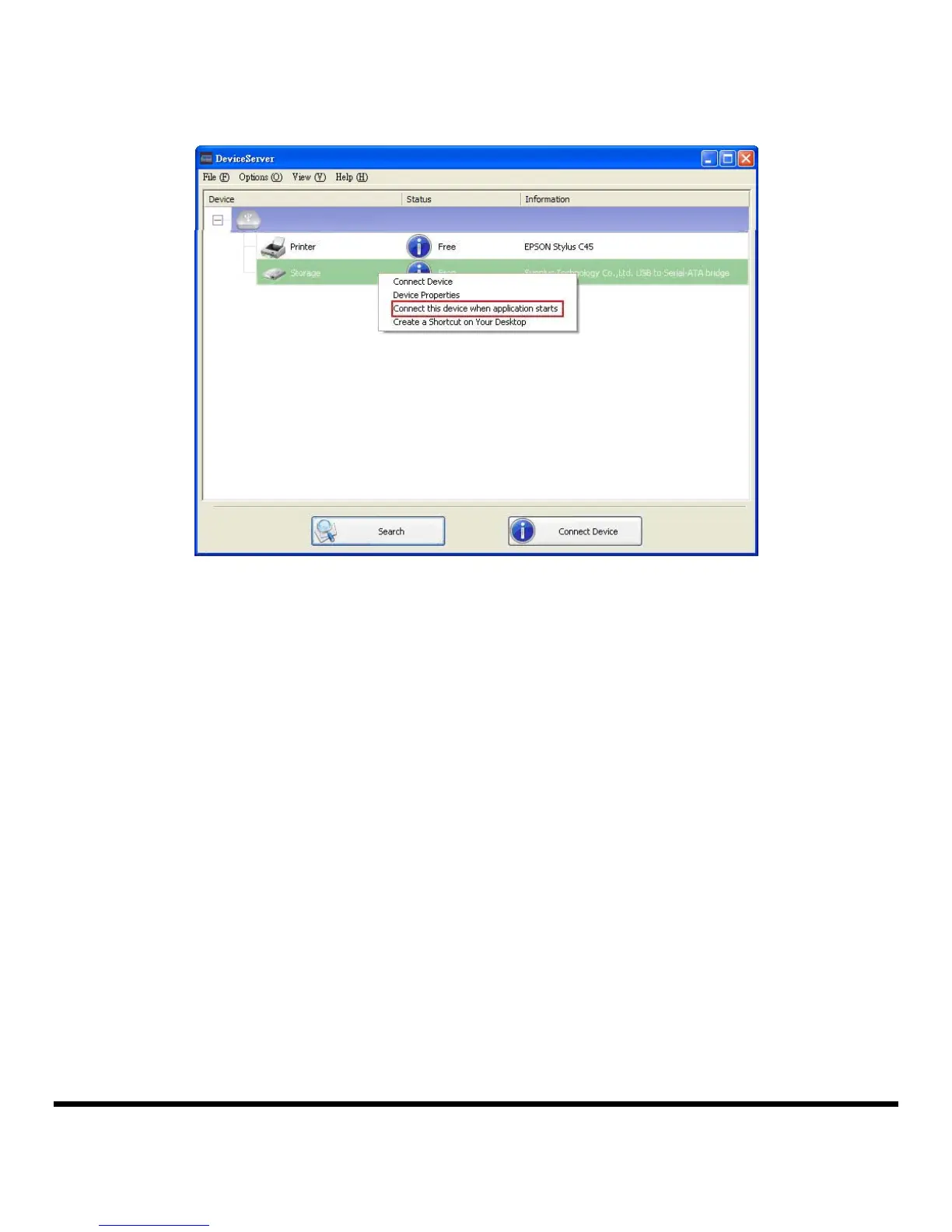 application starts running. If this device is occupied when the application starts, it will not be