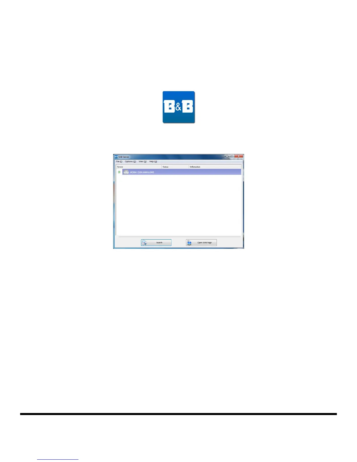 To start the USB Server application, double click the shortcut icon on the Desktop. The Main