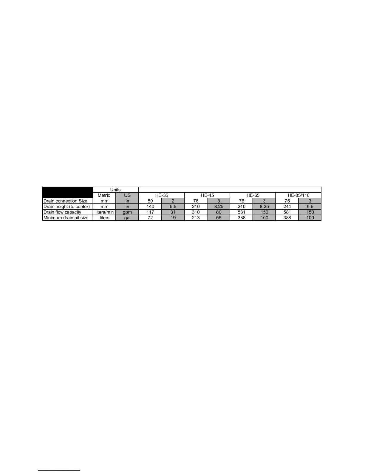 A drain system of adequate capacity is essential to the machine performance. Ideally the water
