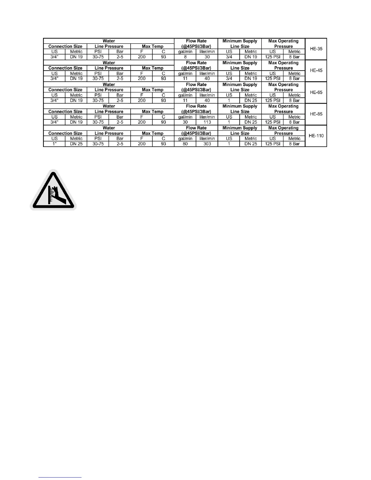surfaces can be extremely hot and will cause severe burns. The steam must be