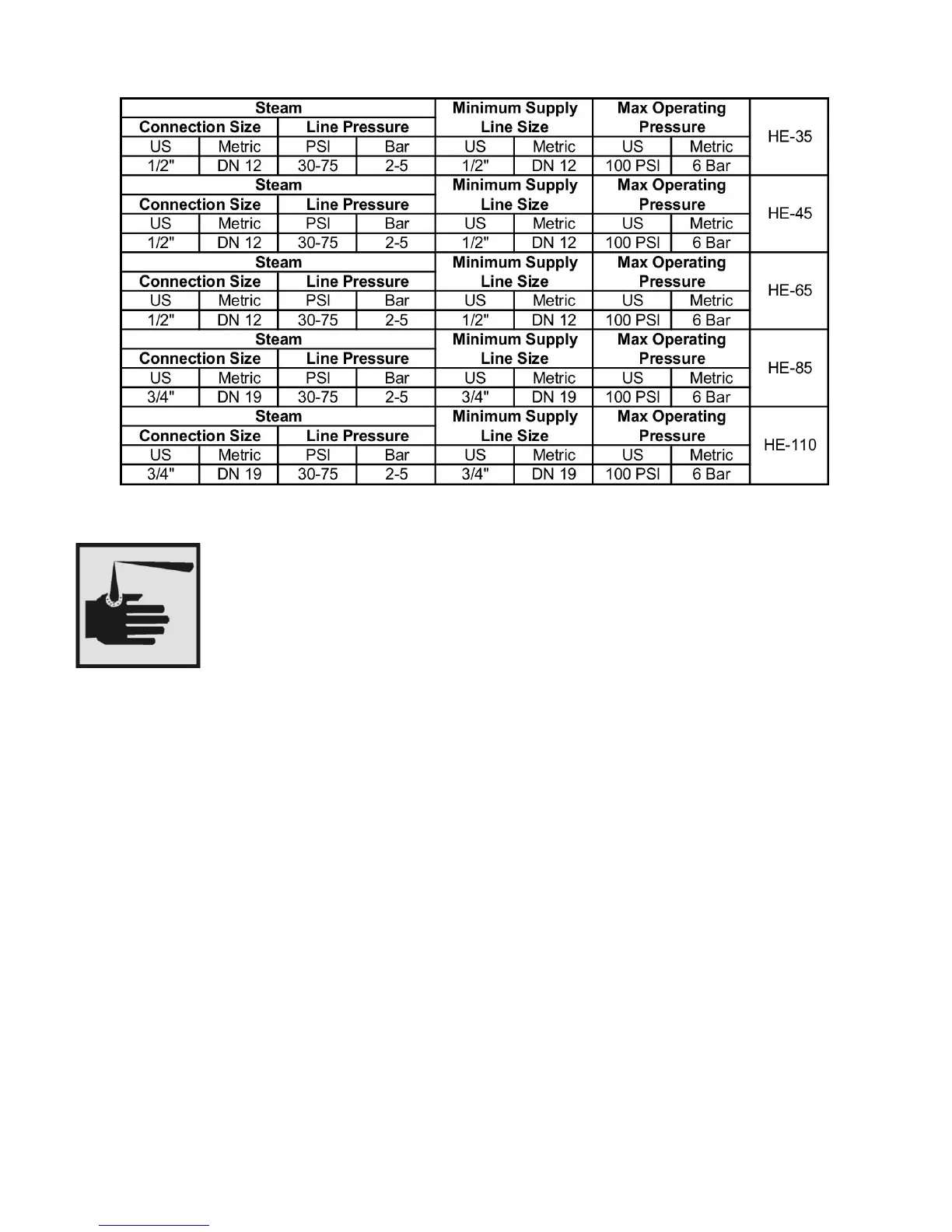 External supply connections for the B&C HE washer-extractors with the Stainless Steel supply box