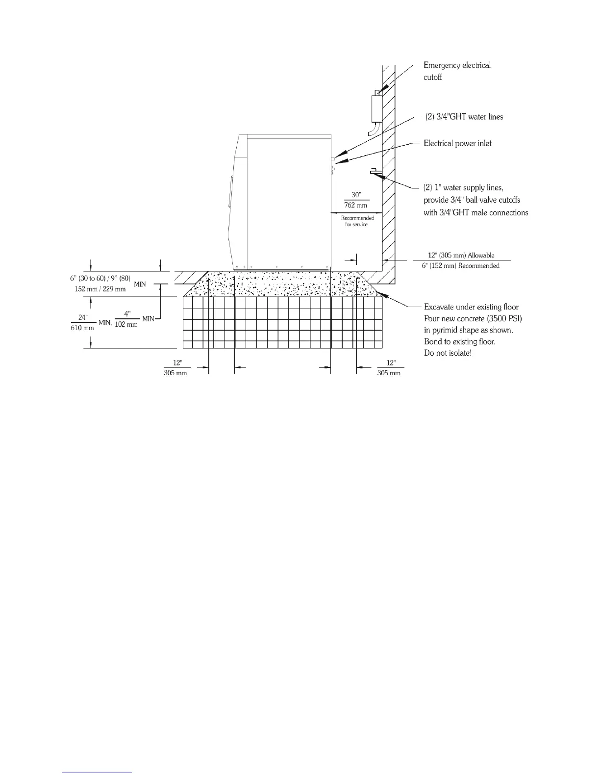 3. Fill the spaces between the machine base and floor with machinery grout. Grout completely