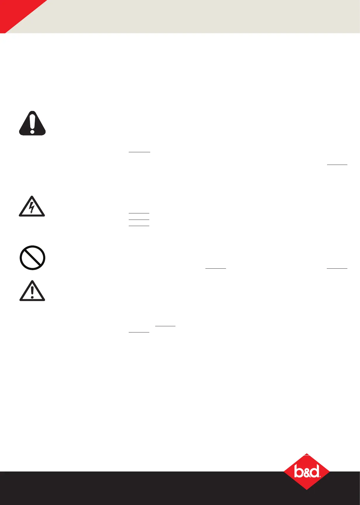 • Keep hands clear of moving door as sharp edges can cause cuts or lacerations.