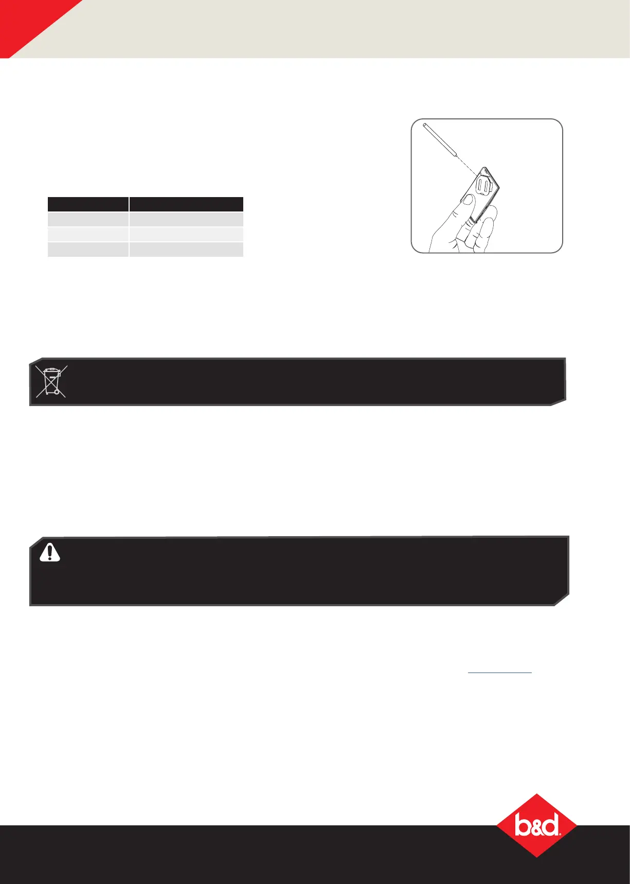 in your Owners Opener Handbook, from your nearest B&D ofce or visit the B&D Website bnd.com.au.