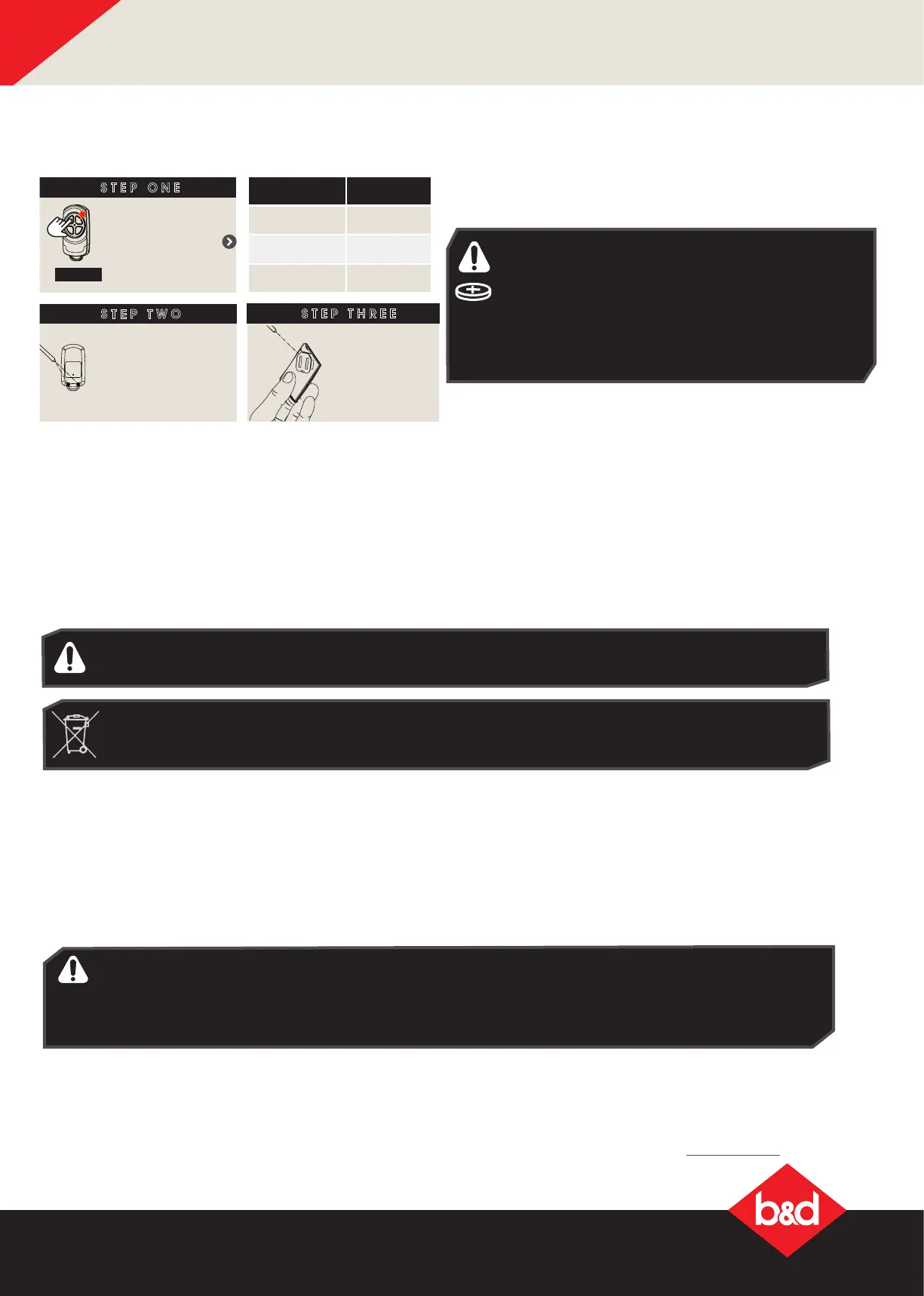 in your Owners Opener Handbook, from your nearest B&D ofce or visit the B&D Website bnd.com.au.