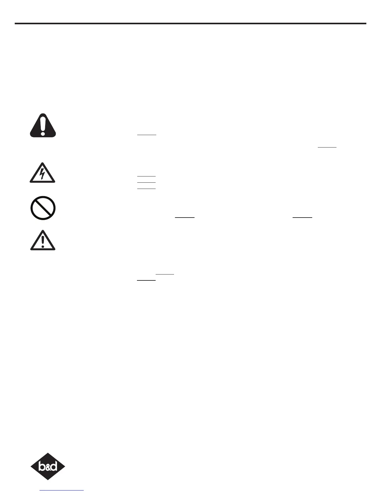 • Keep hands clear of moving door as sharp edges can cause cuts or lacerations.