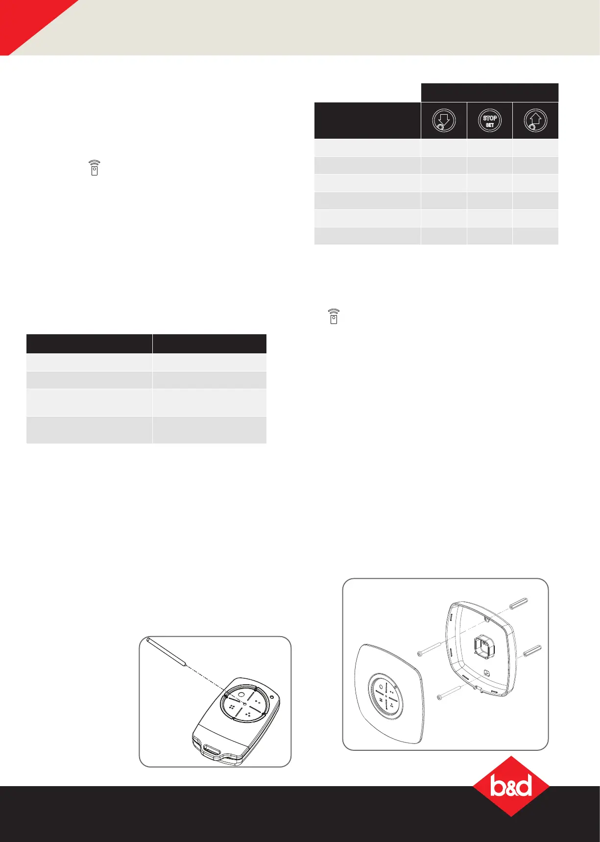 to set the required transmitter function. The opener