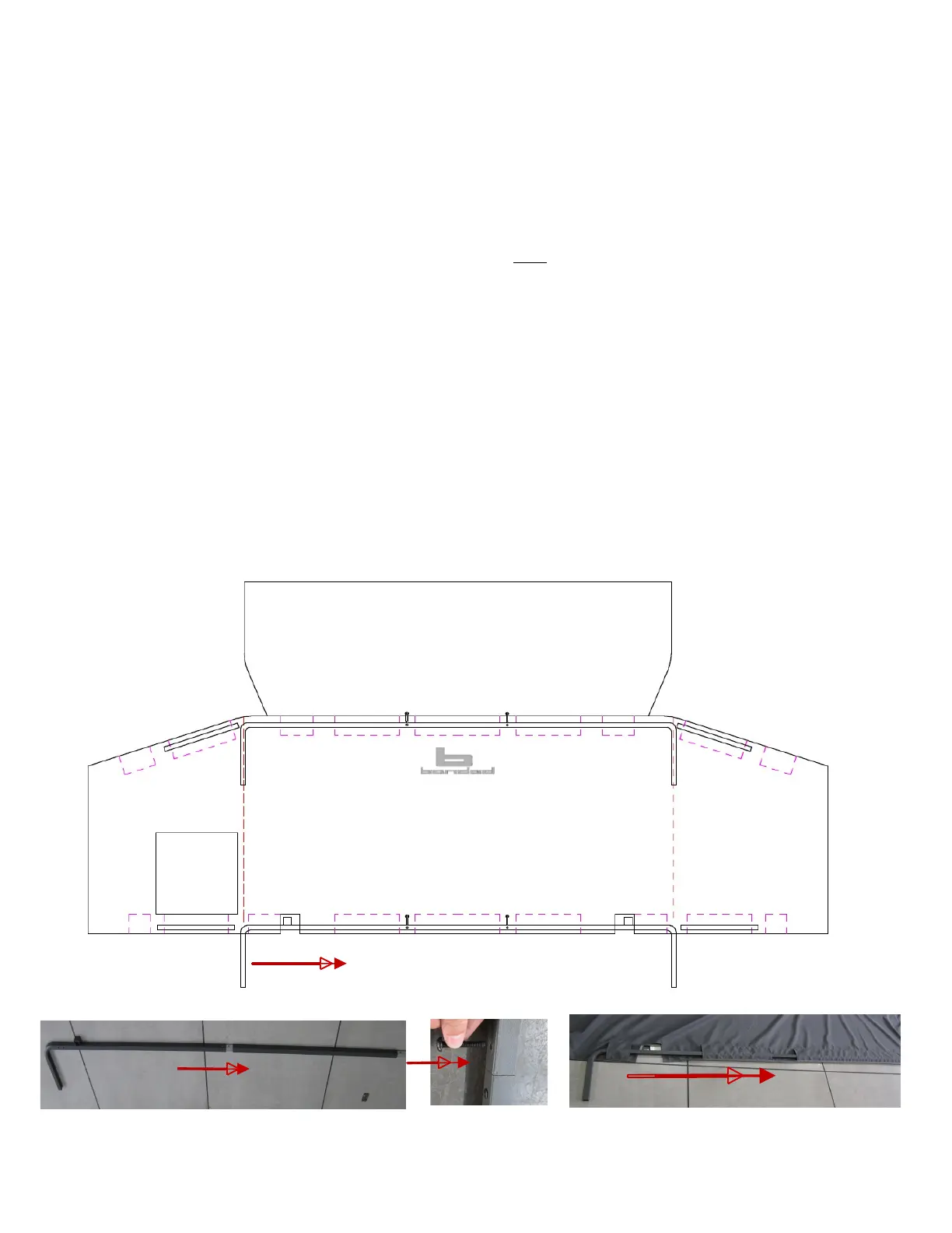 Important: All bolts facing inward so that all nuts are inside of frame.