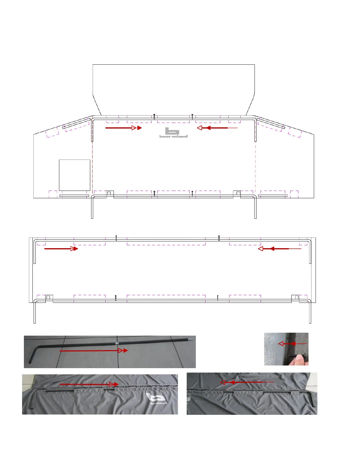 Repeat Step 2&3 to install the Top Corner Frame(C) & Connect Frame(B) to the top of the Main Cover(M) and Front