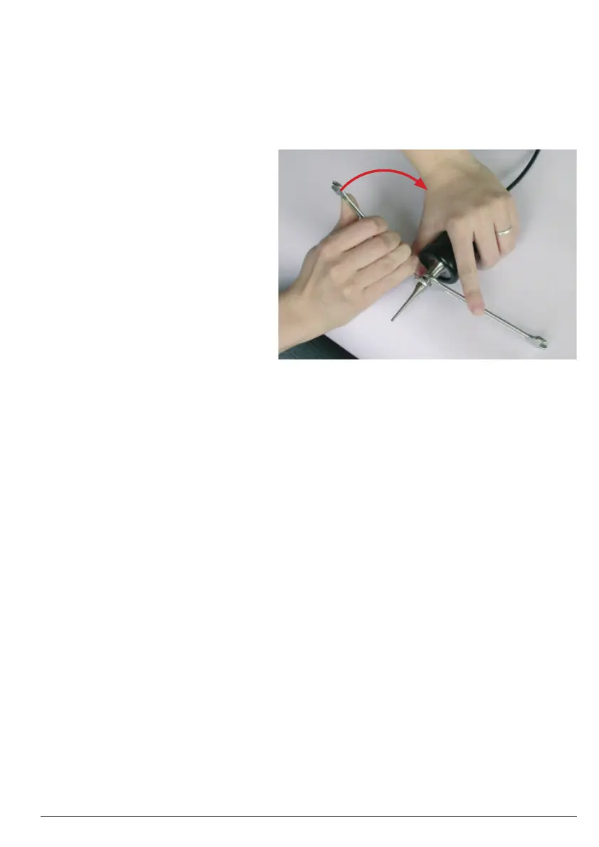 Turn the ultrasonic converter and spanner to the right so that the other end of the lies on the
