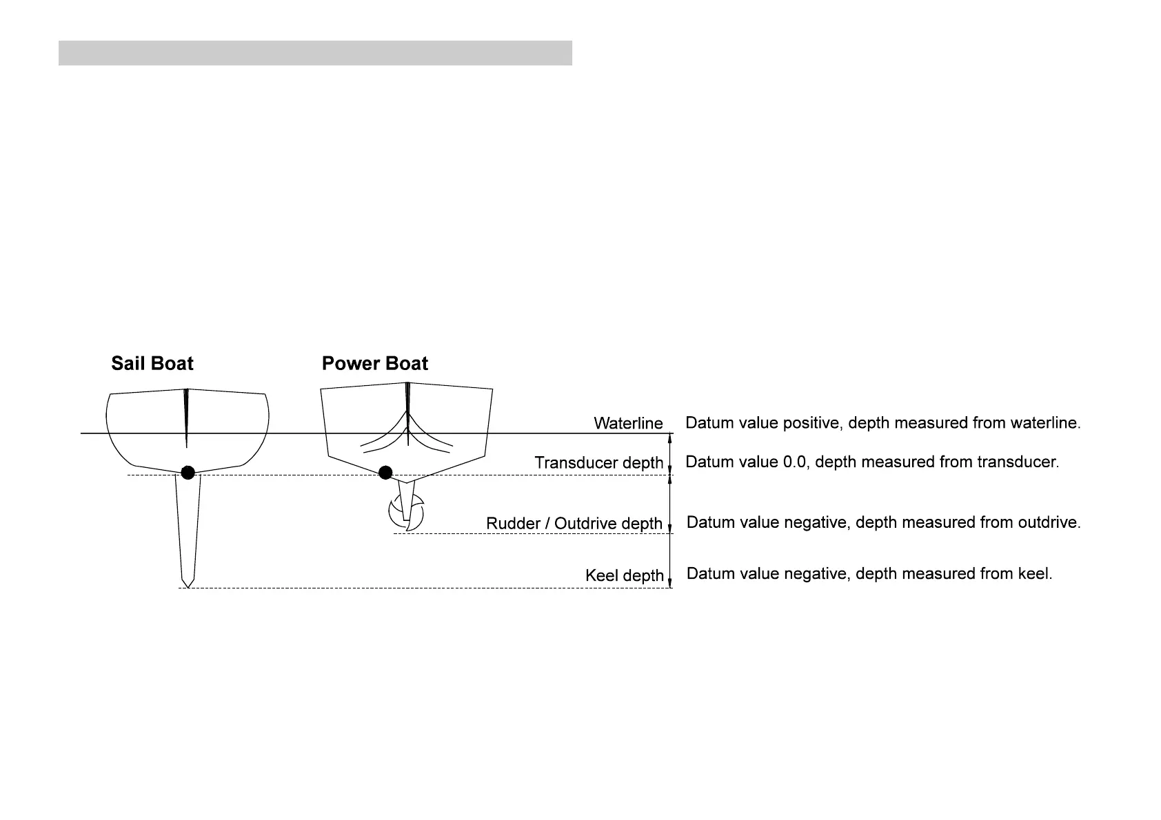 depth from the waterline, the depth sensor (transducer) or