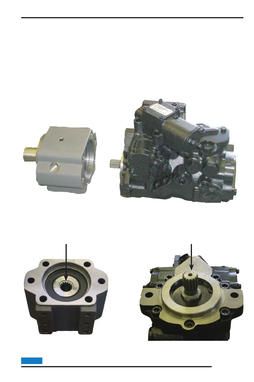 external splines of the hydraulic pump. The tops of the splines should be at. If the splines are pointed, they