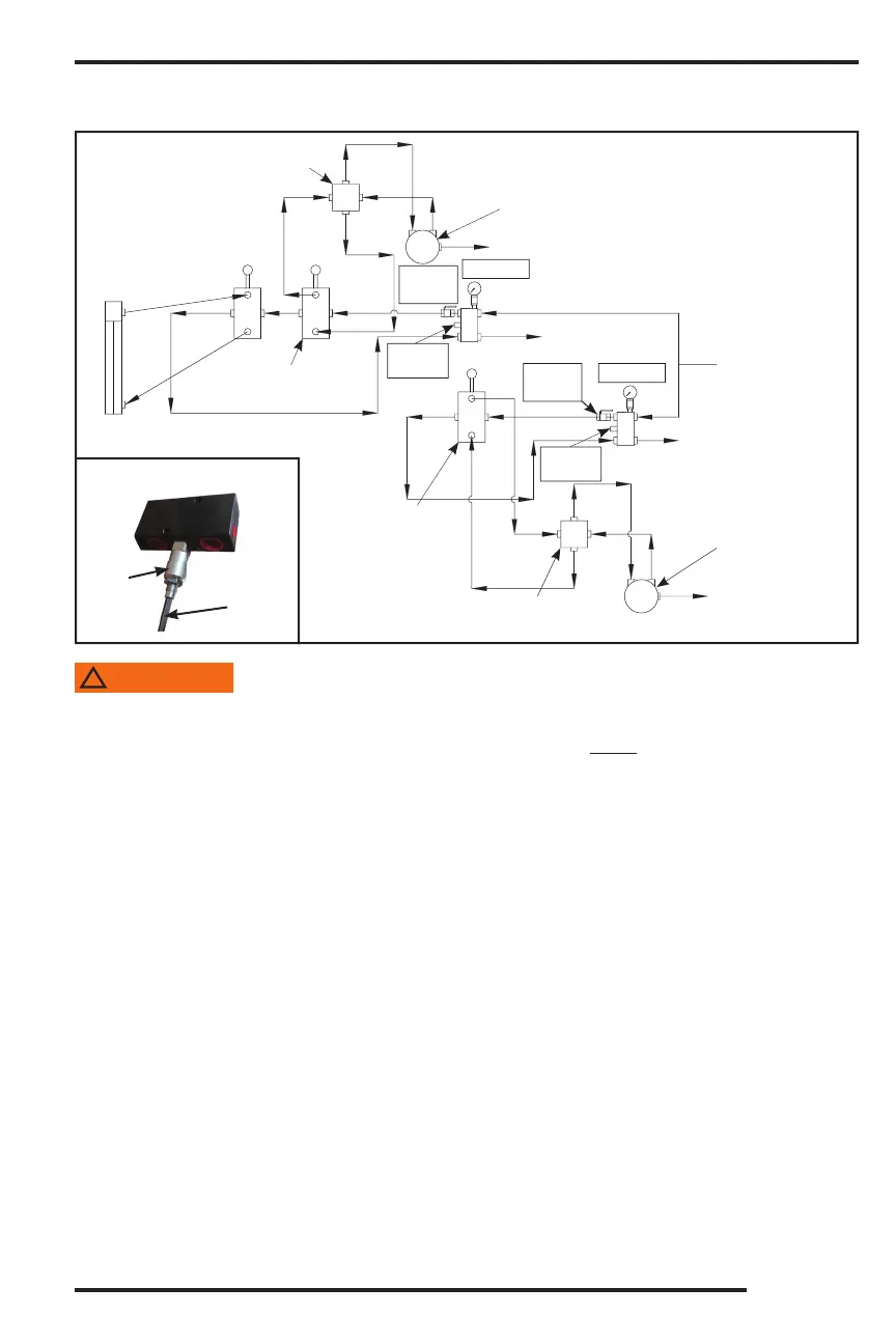8. Locate the relief on the main relief block, loosen jam nut, use an allen wrench to readjust relief pressure