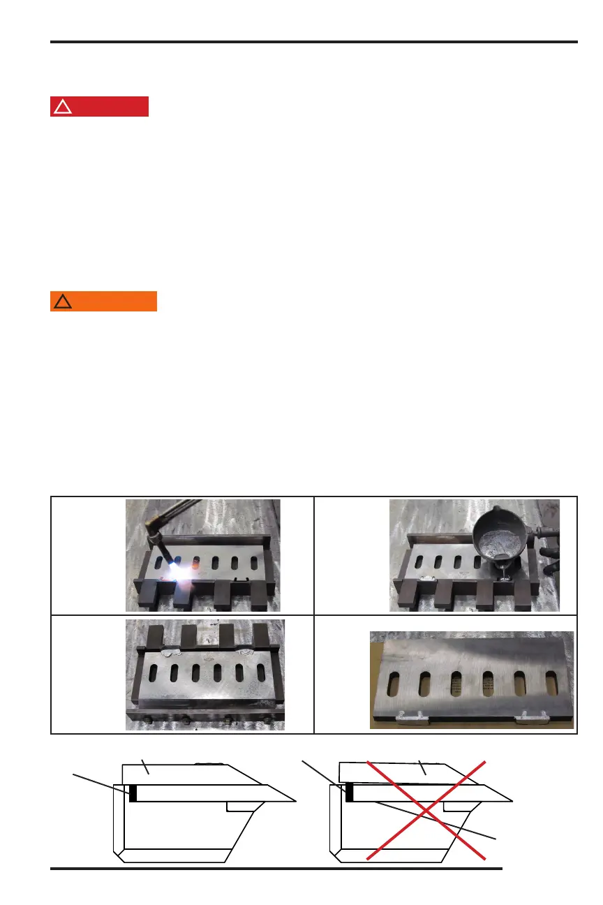 Using a piece of wood, install the sharp babbitted knife and hold it rmly into position. The piece of wood