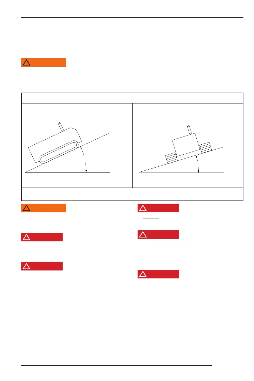 Do not attempt to operate the machine on an ascending or descending slope of more than 25° or 46% or