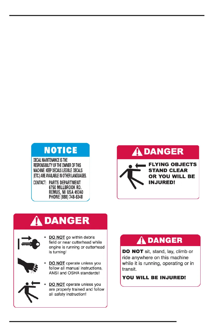 It is very important that all decals remain in place and in good condition on your machine. Please follow