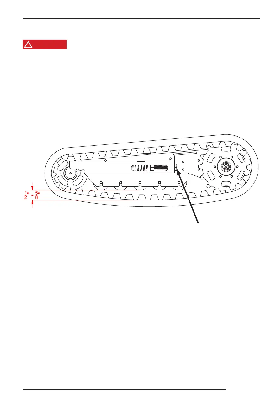 Proper track maintenance includes monitoring the tension of the rubber track. To check the tension, lift the
