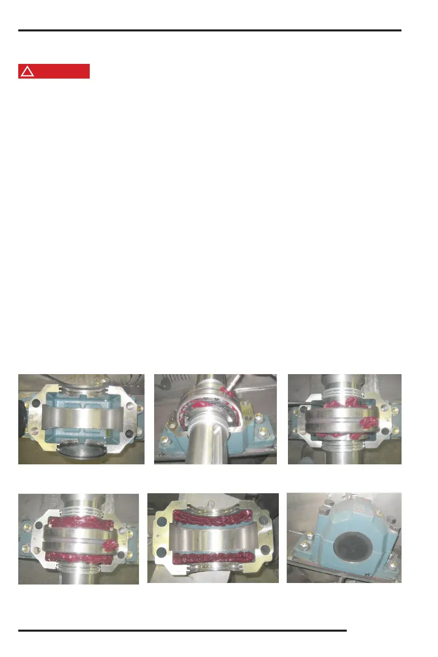 Lift o the bearing cap, inspect, and wipe o the interior.
